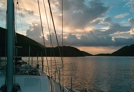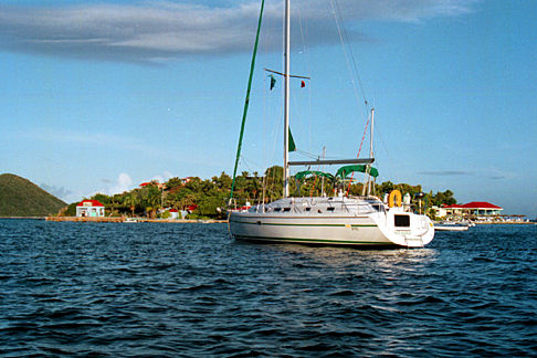 Our boat, "White Sparrow", moored at Marina Cay