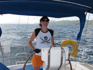 Sarah searching for cabana boy near Sandy Cay |