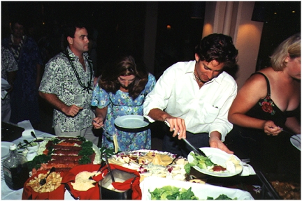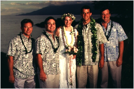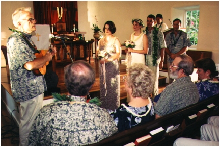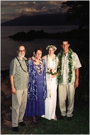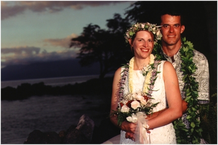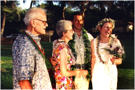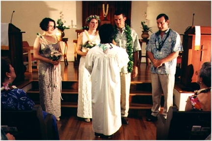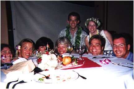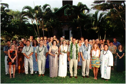 Thanks to everyone who could share our wedding with us, especially those who made the long trip from the mainland, our new combined families, Nancy, Dave, Cynthia, Christopher, Brian, Ruth, Don, and our relatives, cousins Ruth and Allen, and Uncle Don. Thanks to Ruth and Don for the rehersal dinner, and to Dave and Cynthia for the reception party.